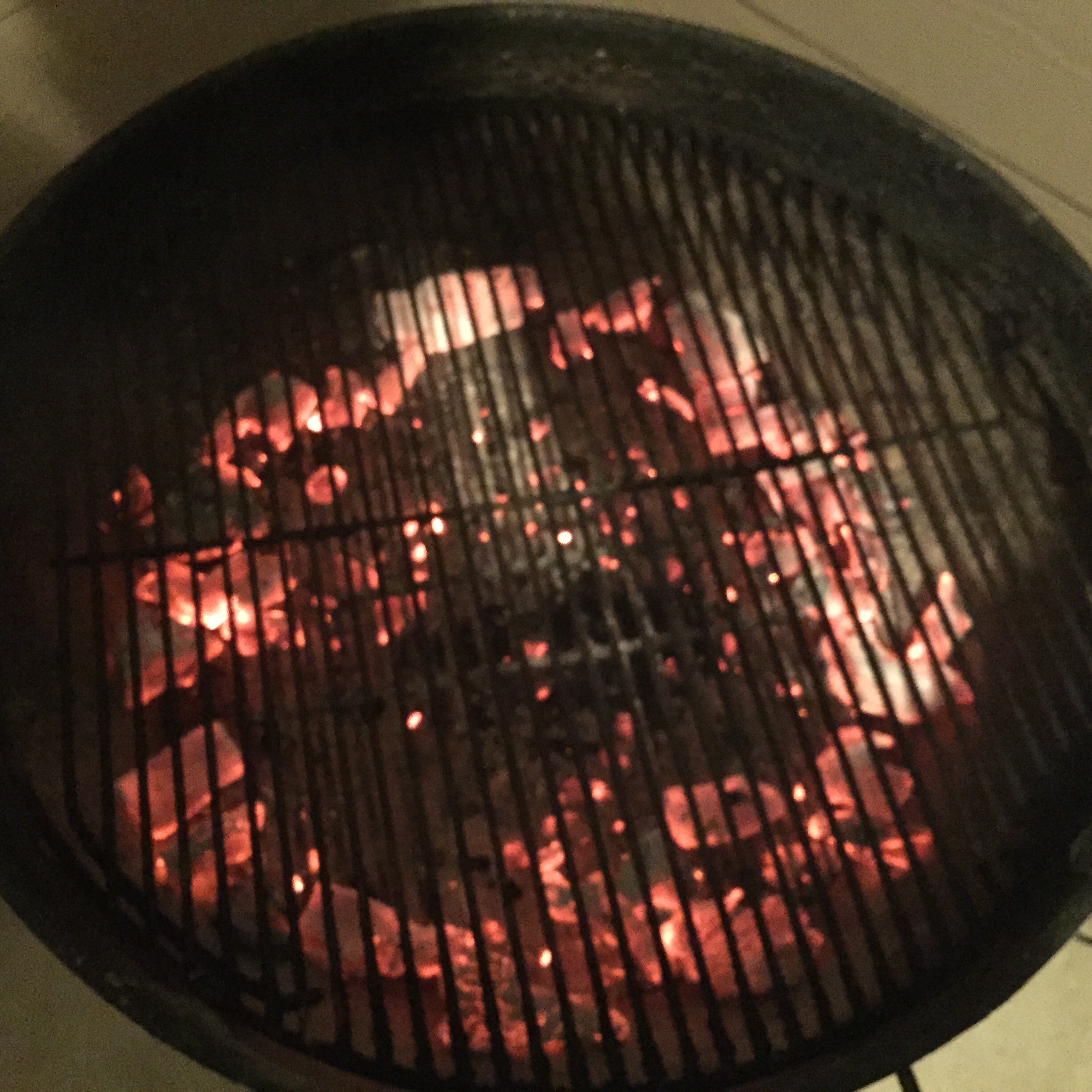 - Get the grill ready by starting your charcoal in a chimney. You want enough coals to maintain around 250-300 F.